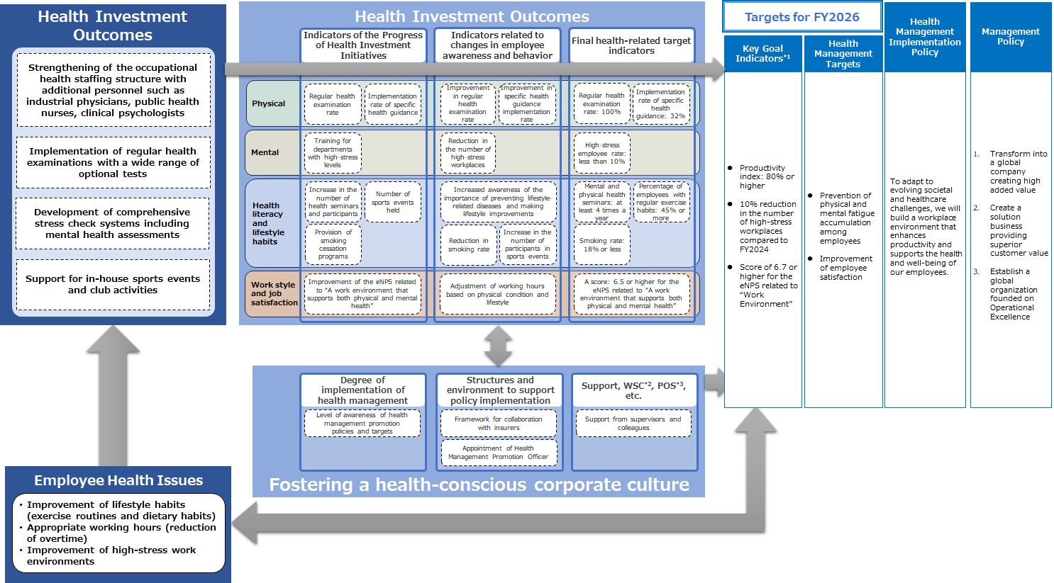 *1 Key Goal Indicator: A metric that measures the achievement level of a company’s ultimate goals. In health management, it is used as a performance indicator to show how employees’ health and engagement contribute to corporate performance.