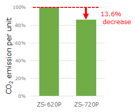 CO2 emission Annual battery consumption (AA alkaline primary battery) (Compared to the existing model, the ZS-620.) |