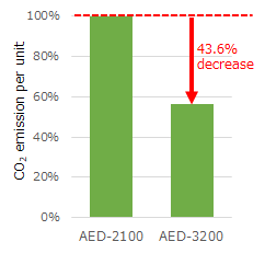 CO2 emission Annual electrical energy consumption (Compared to the existing model, the AED-2100.) |