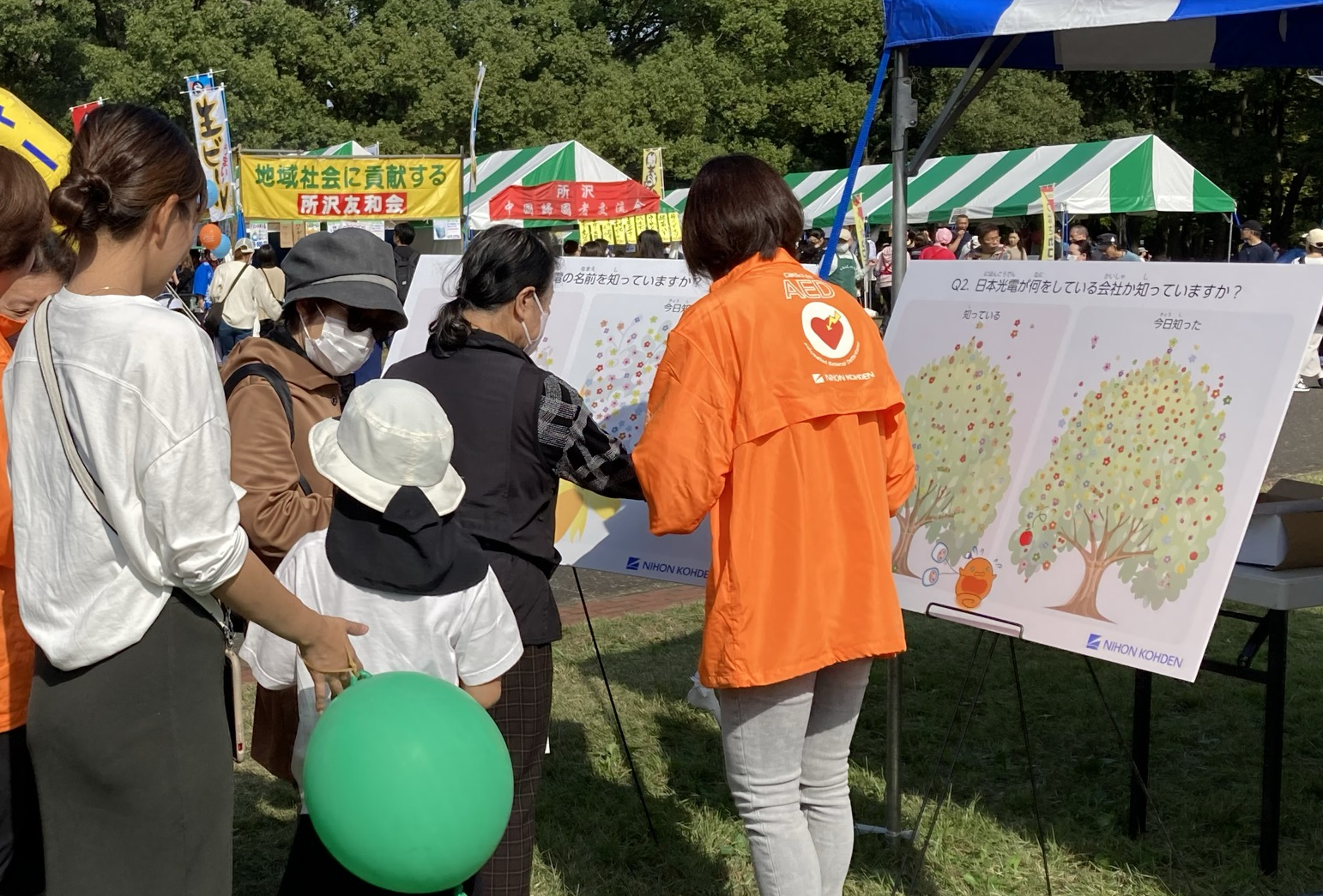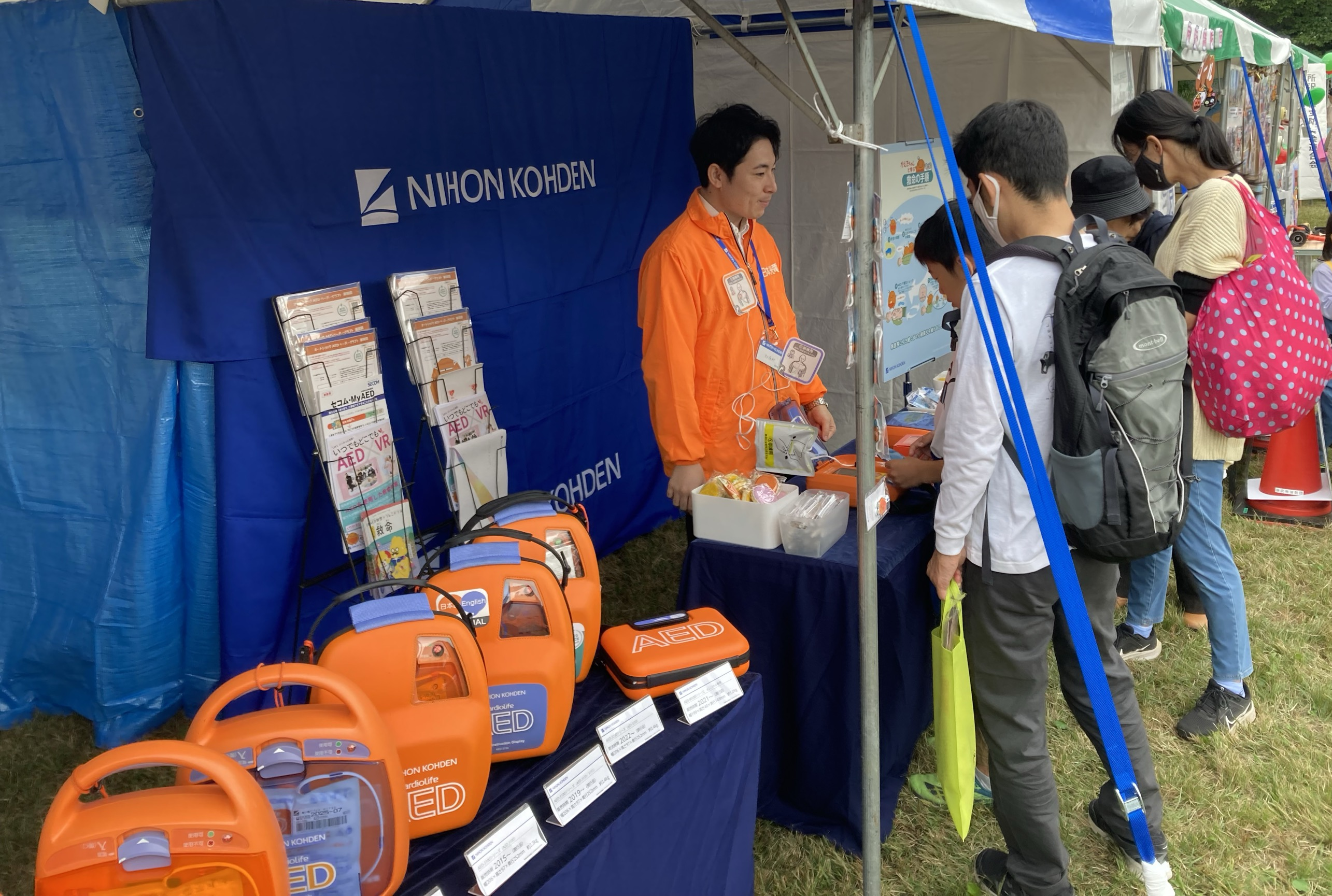 In October 2024, Nihon Kohden exhibited an AED awareness booth at the Tokorozawa Citizens Festival. This was Nihon Kohden’s second time exhibiting at the event, with the goals of increasing AED usage and enhancing public recognition of the Company. As 2024 marked the 20th anniversary of AEDs being approved for public use in Japan, the booth also featured a display of past AED models and introduced the history of AED development. The hands-on AED experience was a great success, attracting many participants, ranging from children to adults. Through these efforts, Nihon Kohden hopes to make AEDs feel more familiar to the public and contribute to increased usage rates.
